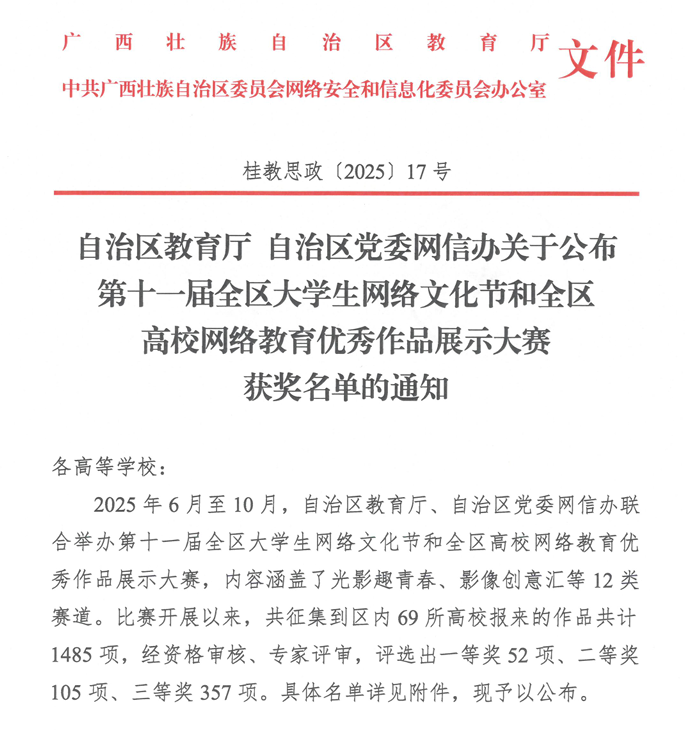 近日,自治区教育厅与党委网信办公布第十一届全区大学生网络文化节和网络教育优秀作品展示活动获奖名单。凯发服务