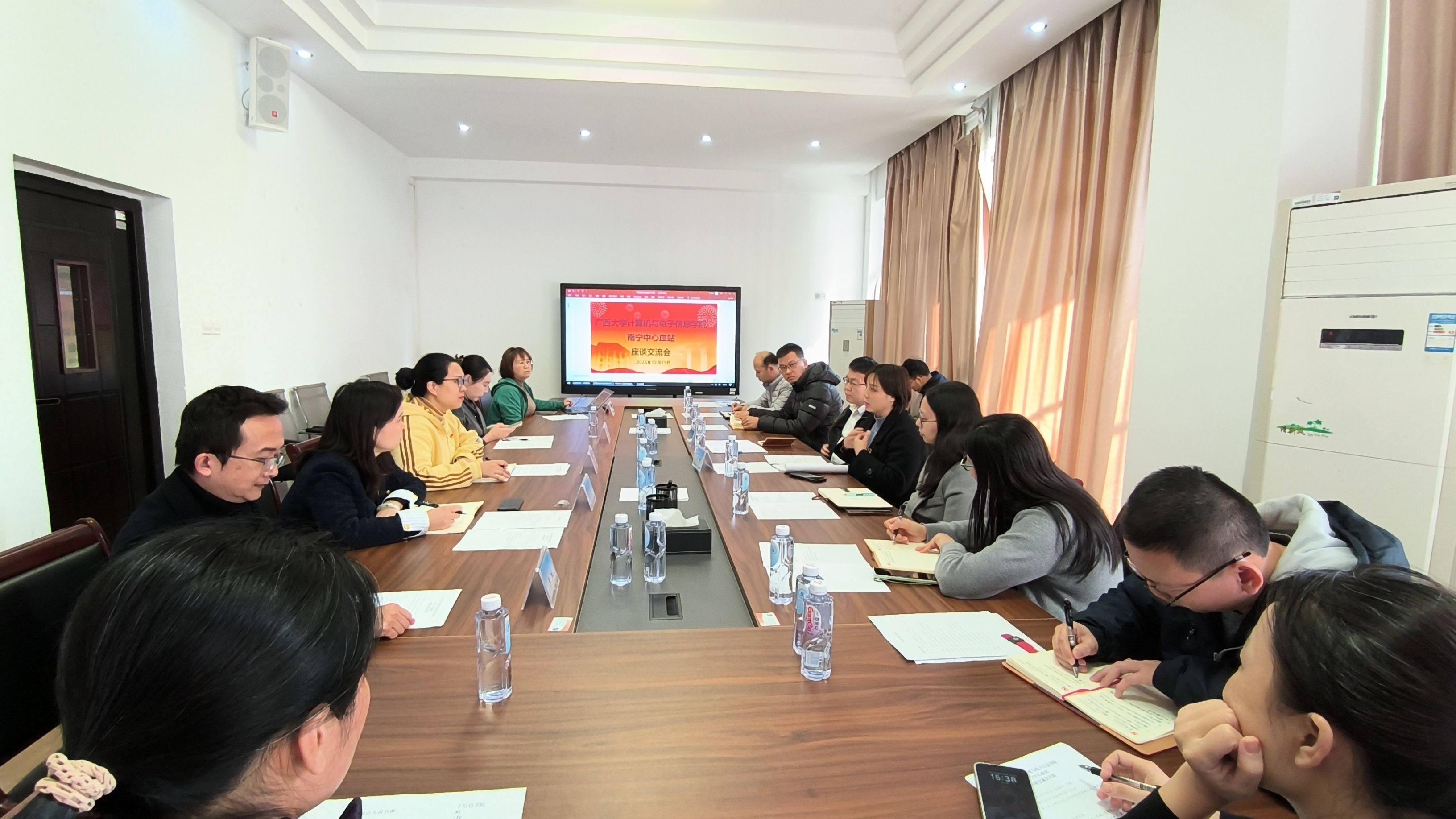 南宁市中心血站的相关负责人依次介绍了血站在党建工作、无偿献血宣传与服务、信息化建设等方面的基本情况。他们表示,当前血站正积极探索人工智能技术在献血服务流程优化、血液库存智能管理、宣传科普智能化等方面的应用,希望借助高校的技术优势,共同推动“AI+献血”的融合创新。
