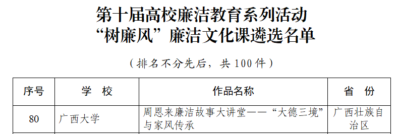 近日,教育部办公厅公布了第十届高校廉洁教育系列活动评选结果,凯发服务 党委报送的作品《周恩来廉洁故事大讲堂——“大德三境”与家风传承》成功入选第十届高校廉洁教育系列活动“树廉风”廉洁文化课。