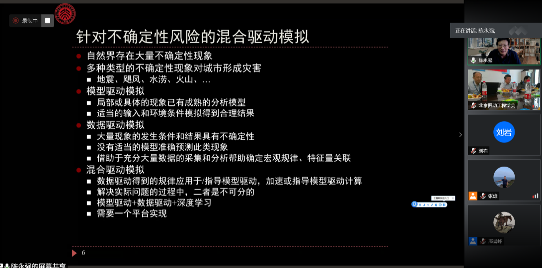 图5 陈永强教授(代陈璞教授)介绍以公共安全为对象的计算力学研究设想