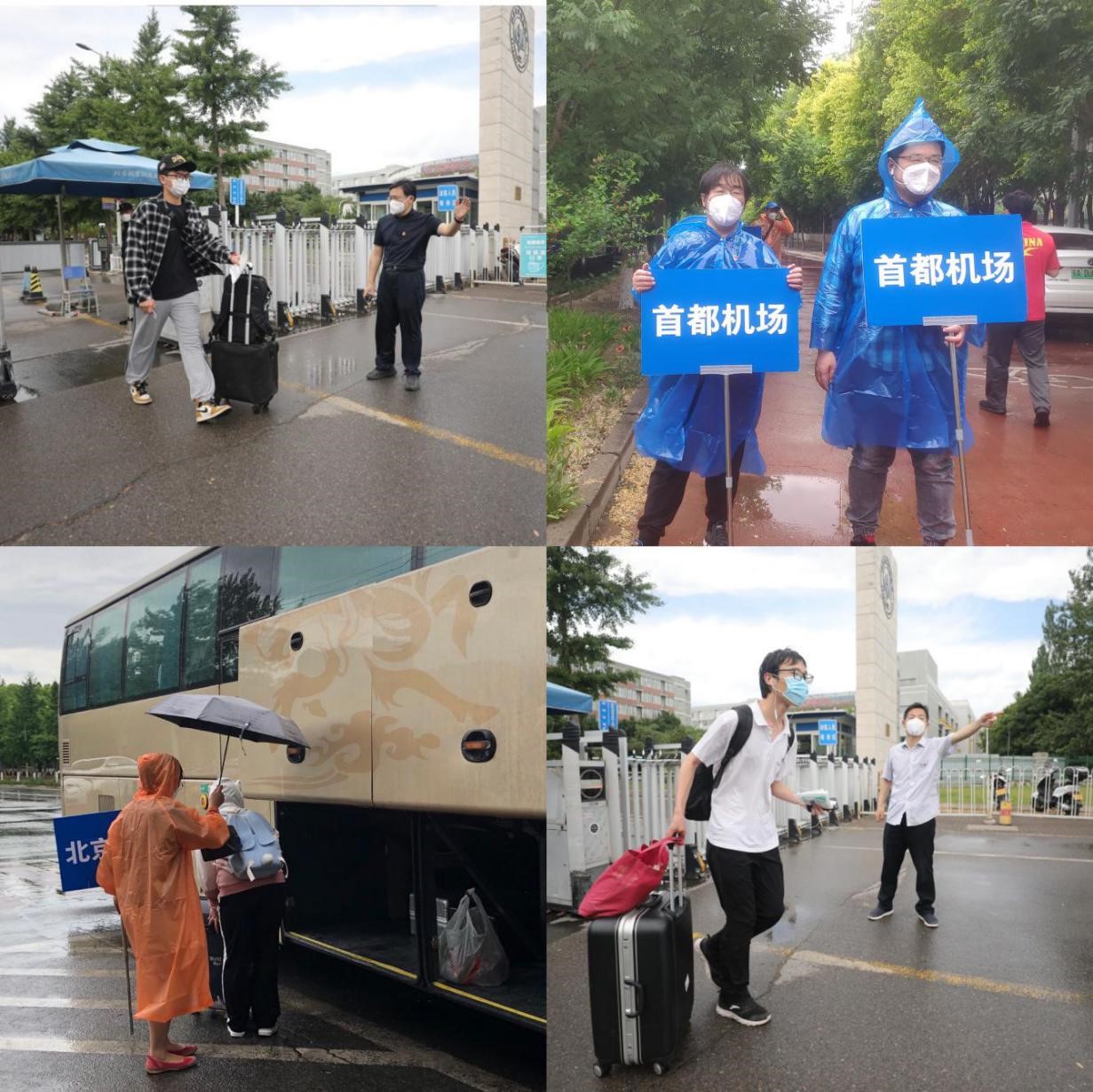 上午11点,党员同志们冒着雨提前来到沙河校区东门,为引导学生返乡返家登车做准备。在支部书记袁卫星教授的带领下,支部组织委员靳海川副教授简单介绍了志愿服务的工作内容,包括校门引导、车辆指引、提示提醒等。大家分工明确、各司其职,有同志负责出校同学“一对一”上车引导,高效组织学生有序登车;有同志负责在校车上做好离校提示和个人防护提醒,做好学生的“贴心家长”;还有同志冒雨为学生搬运行李、撑伞护送。在大家的通力配合下,党支部共陆续引导一百余名学生有序登车,并陆续安全送往北京市6个火车站和2个机场。同学们深切地感受到北航老师的关心关爱,纷纷表达了对学校、对老师们的感激和感谢。
