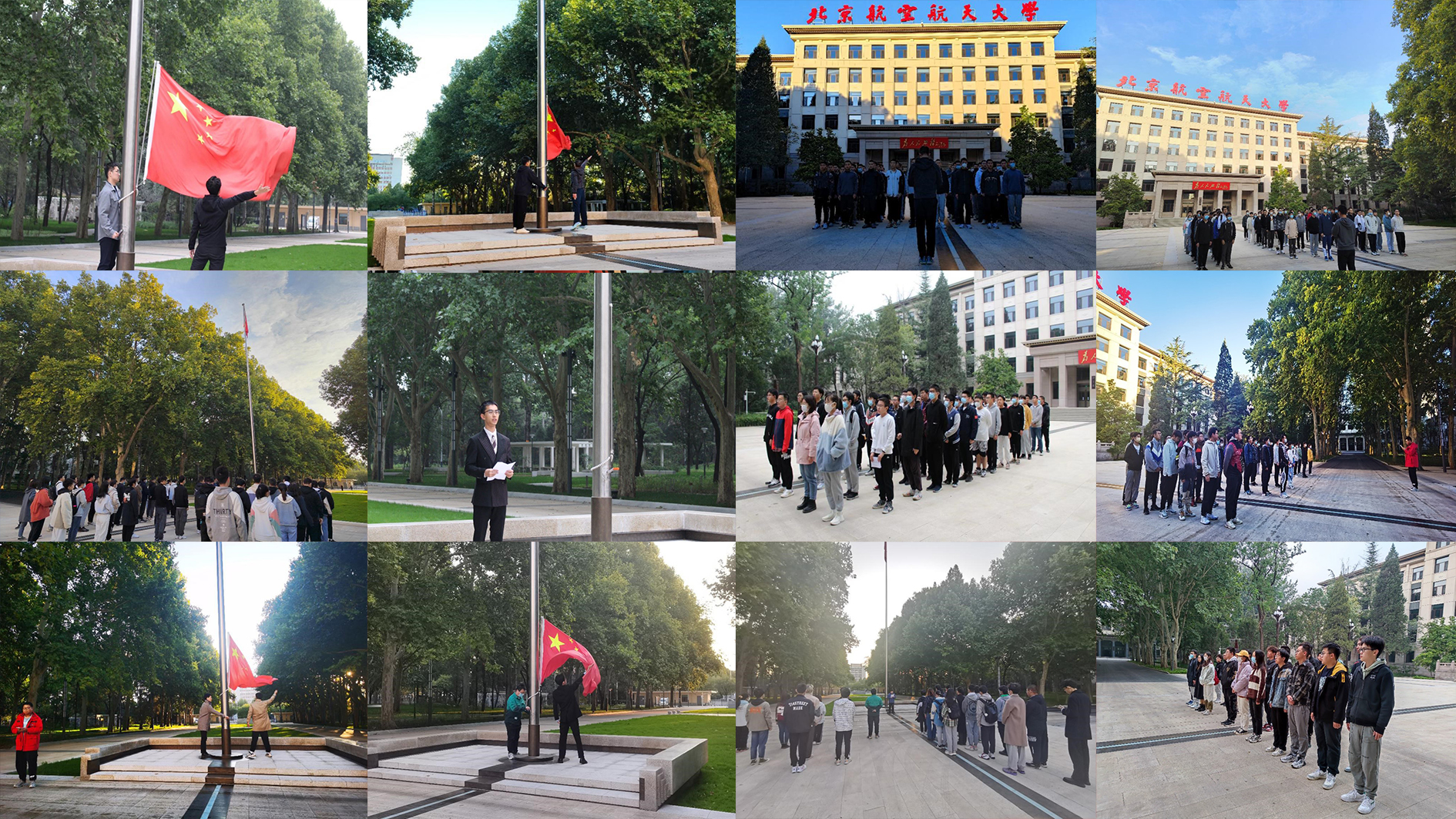 本科年级以团支部为单位分批举行了升旗仪式。升旗仪式上,同学们排列整齐,庄严肃穆,向国旗行注目礼。随着国旗在晨光中缓缓升起,全体同学齐唱国歌。之后认真聆听国旗下讲话,主题涵盖“传承航空精神,奋斗铸就功成”、“青春逢盛世,奋斗正当时”、“青年人是时代的接班人”、“学习党史文化,争做有为青年”、“拥抱时代,用奋斗迎接党的二十大”等,共同呼吁同学们要始终朝着五星红旗的方向,牢记党的嘱托,肩负时代使命,自觉把个人理想和祖国命运、个人志向与民族复兴紧密相连,脚踏实地,仰望星空,用所学的知识、培养的能力为祖国和人民需要的事业做出贡献,为了中华民族的伟大复兴而不懈奋斗。生在国旗下,长在春风里,目光所至皆为华夏,五星闪耀皆为信仰。航空学子用实际行动表达对党的礼赞,今后将继续斗志昂扬,积极进取,为祖国的空天事业注入新的力量。