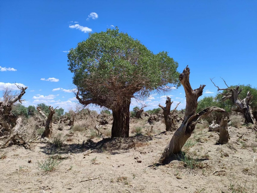 7月14日早上7:30,支部成员郭元东、王焕发与其他支部成员一起,从哈密市中心出发,驱车270公里,历时4小时前往伊吾胡杨林。胡杨生而三千年不死,死而三千年不倒,倒而三千年不朽,是真正的“沙漠英雄树”。在超过40℃高温的戈壁滩上,支部成员们通过参观胡杨林,深刻领悟了胡杨精神,无论是高原还是盆地,无论是火洲还是寒极,无论是荒漠还是绿洲,都要像胡杨树那样,坚忍不拔、自强不息、扎根边疆、甘于奉献。