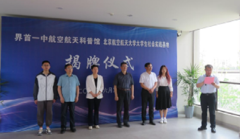大学生社会实践基地揭牌仪式在界首一中养城校区隆重举行。此次活动旨在加强校地合作,推动航空航天科普教育在中学的普及,宣传北航空天报国的红色精神,为界首学子培养空天报国精神和开拓科学认知视野。