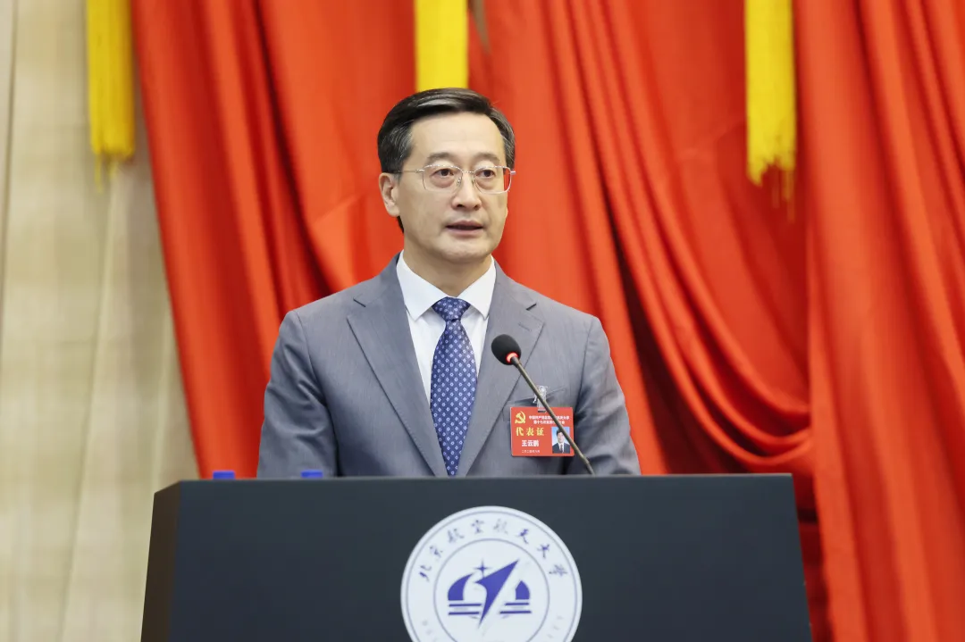 大会号召,全校各级党组织、全体党员和师生员工要更加紧密地团结在以习近平同志为核心的党中央周围,高举中国特色社会主义伟大旗帜,弘扬以“空天报国”为内核的北航精神,以学校“1-3-6-6-1”战略框架,即1个目标、“3步走”战略安排、6大发展能力、6大行动计划和1项工程为指引,勇担使命、勠力前行,奋力谱写中国特色、世界一流大学建设新篇章,在新时代新征程上交出一份不负祖国、不负人民、不负时代的北航答卷!