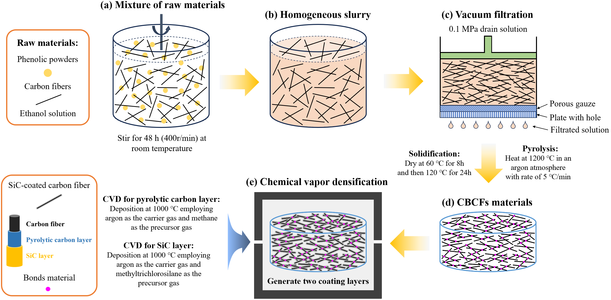 图2 化学气相沉积技术制备SiC-coated CBCFs材料的过程