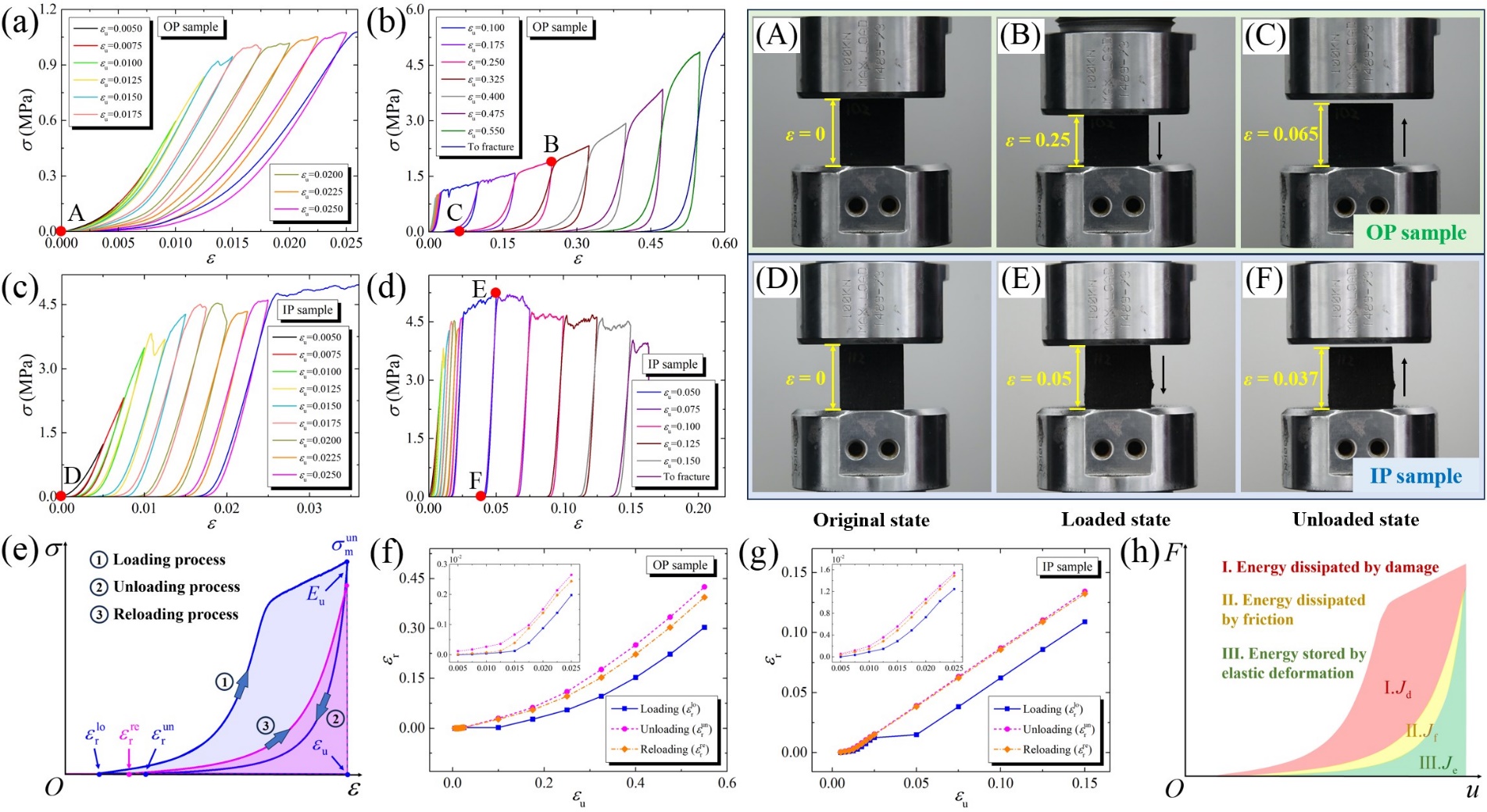 图6 单次逐级循环压缩实验结果以及残余应变和能量耗散分析