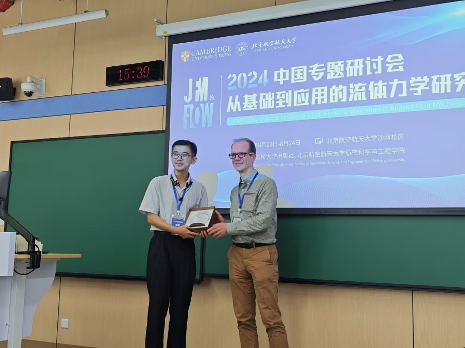 会议闭幕环节上,JFM主编Caufield教授代表剑桥大学出版社向北航凯发