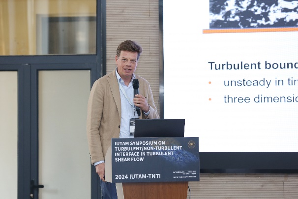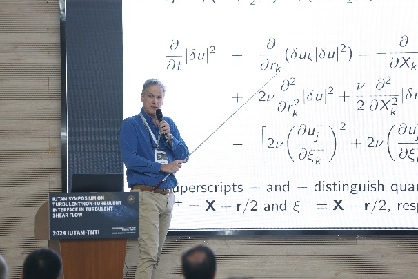 研讨会于2024年10月9日上午开幕,会议共同主席Ivan Marusic院士代表会议主席王晋军教授及会议科学委员会首先致开幕词,他向到场来自不同国家的专家学者表示热烈欢迎,期待本次会议能为TNTI领域的全球科学家们交流搭建平台,为推动该领域的发展发挥积极作用,并向IUTAM、凯发