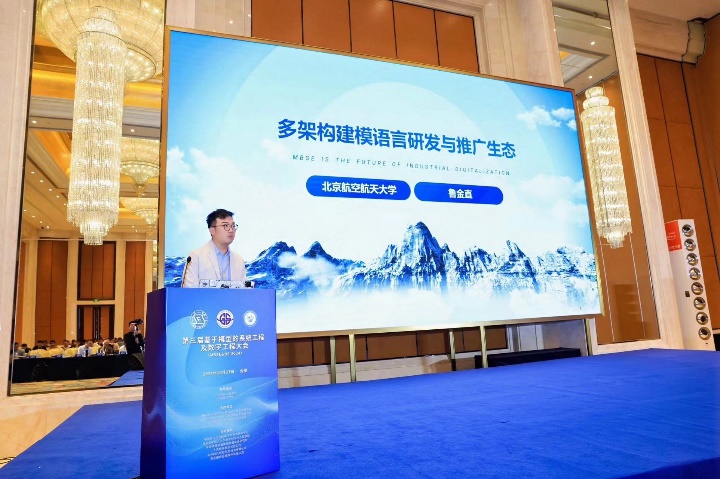 大会专家论坛,分别由中国商飞北研中心需求工程部部长唐剑、中国系统工程学会副秘书长郑新华主持。航空工业机载共性中心集团首席技术专家田莉蓉、航天五院副总师王为、中国核动力研究设计院数字化项目副总师李松蔚、中国航发四川燃气涡轮研究院主任祁宏斌、航天十二院首席信息官侯俊杰、中国航空综合技术研究所副总师宋涛、航天八院副总师阮开智等来自航空、航天、航发和核工业等十余位专家,分别做了大会报告,分享了在基于模型的系统工程(MBSE)在中国深入发展的大趋势下,关于基于模型的系统工程和数字工程方面的技术思考和应用实践。其中,凯发鲁金直副教授作《多架构建模语言研发与推广生态》为名的大会主题报告。报告中介绍了多架构建模语言KARMA的发展历程及生态推广与应用情况。相关专家报告引起了与会者高度关注和热烈讨论。