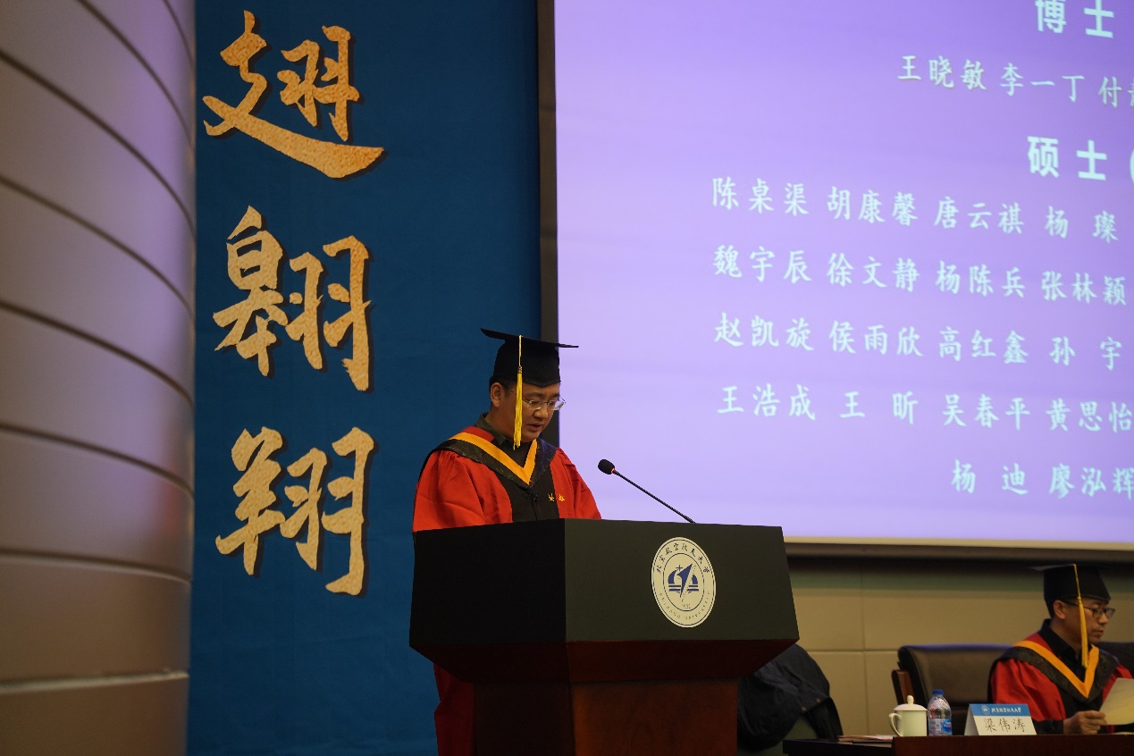 和导师的培养以及亲人朋友们的支持陪伴,并鼓励所有毕业生同学:“我们曾一起在这里追求梦想,曾一起在这里付出努力,曾一起在这里成长。”祝愿大家在新的征途上,以更加饱满的热情,迎接更加辉煌的明天。