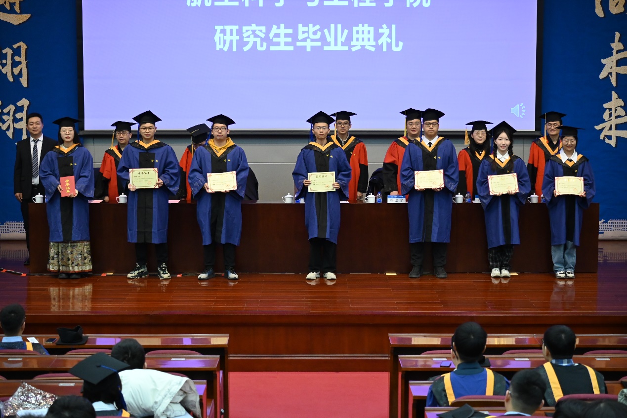 党委书记董雷霆宣读了本批次荣获北京市优秀毕业生和北航优秀毕业生的学生名单,邵浩原、刘英歌等9名研究生获评“北京市优秀毕业生”,王晓敏、李一丁等41人获评“北航优秀毕业生”。主席台领导为优秀毕业生代表颁发证书。