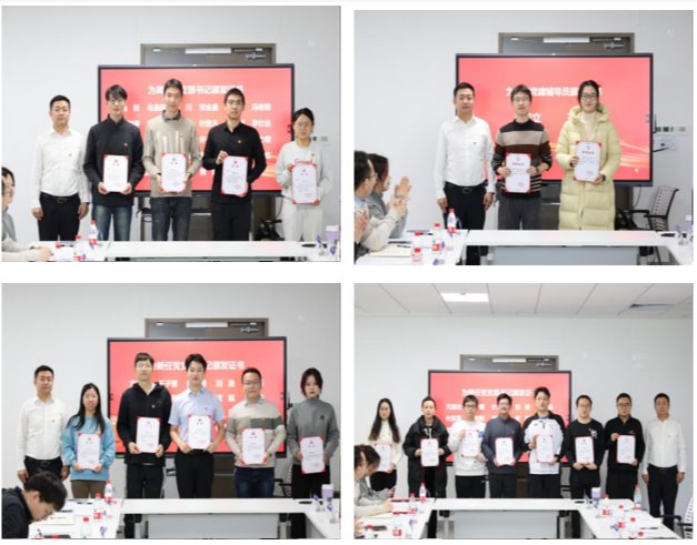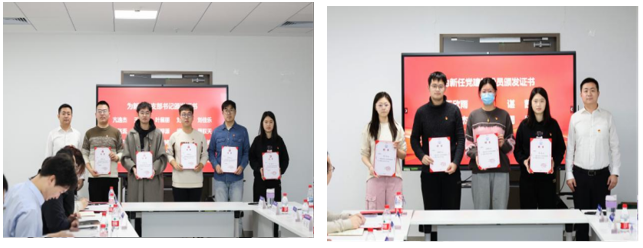 党委副书记梁伟涛为离任学生党支部书记及党建辅导员颁发荣誉证书,肯定了他们在任职期间所取得的成绩,感谢他们为学生党建工作的辛勤付出。为新任学生党支部书记及党建辅导员颁发证书,鼓励他们接过接力棒、做好领头雁,为凯发