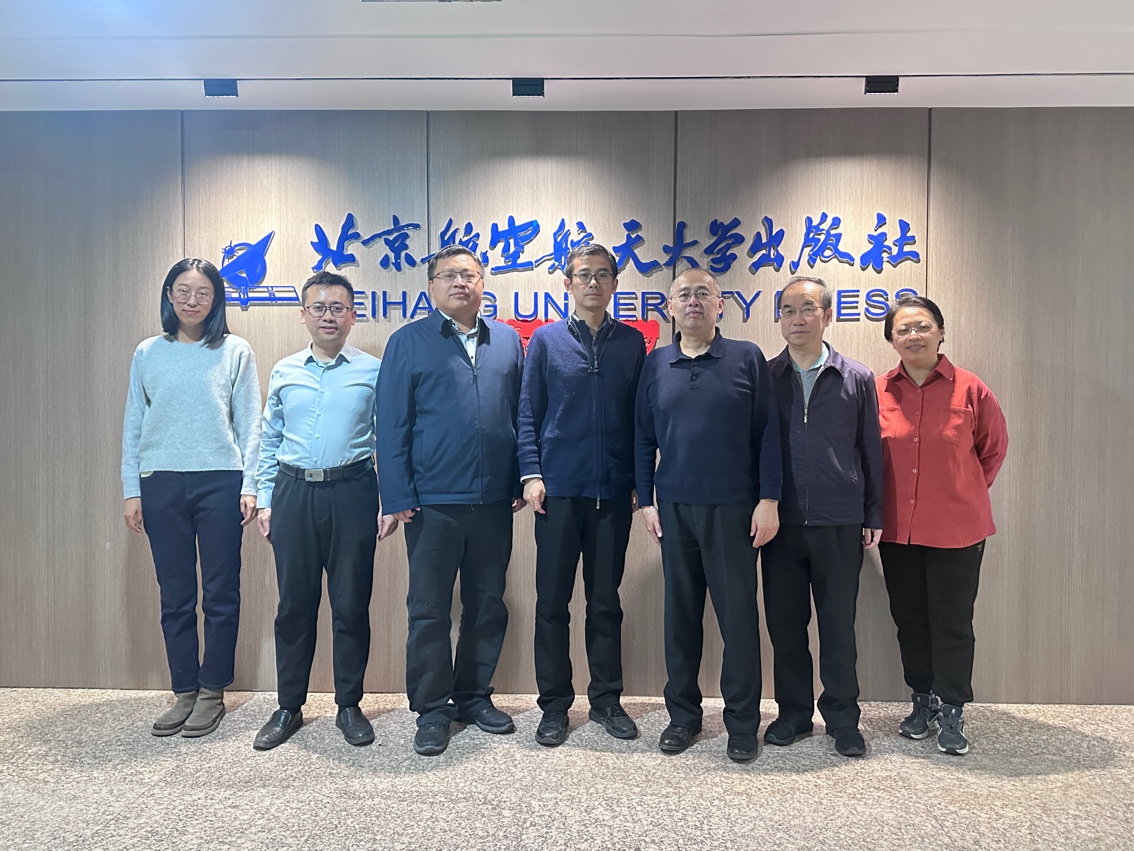 出版社开展调研,北航出版社董事长刘德生、副总经理赵延永、总编辑王雷华、高教出版分社社长蔡喆等领导出席此次活动,并一同参与了调研研讨会。双方就航空航天类教材建设、国家教材建设重点研究基地工作开展等重要议题展开了交流与探讨。