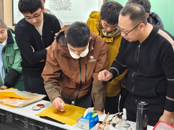 在博雅课堂上,邵帅老师详细解读了纱阁戏人的历史渊源、技艺特色及其深厚的文化内涵,围绕“非遗活化的守护与创新”这一主题与在场同学问答互动,探讨纱阁戏人的创新发展路径。随后,邵悦文老师现场展示了“竹石吉祥”书画作品的创作过程,并指导同学们亲手体验拓印技艺。其中,为本次活动特别制作的哪吒主题印版深受喜爱,大家踊跃参与拓印,现场气氛活跃。最后,晋善晋美实践队队长李奕瑾作总结发言,呼吁同学们关注传统文化,积极参与非遗保护与传承,为中华优秀传统文化的创新发展贡献自己的力量。