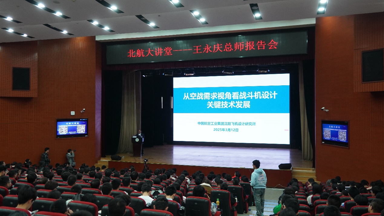 今天,我有幸聆听了王永庆总师的精彩报告。作为北航学子,在学术方法和精神思想上,我都受益良多。王永庆总师从空战发展的历史讲起,讲解生动详实,让我们深刻理解了空战需求的演变;总师继而以战斗机设计为例,讲解针对具体空战需求,从发现问题到提出方案,从仿真验证到实际产品的设计过程,让我们领略到了战斗机设计技术研究的最前沿方法。让人印象深刻的是,由于大家过于热情,硕大的报告厅座位不够,有不少同学是全程站着听完数小时的讲座,生动体现了北航人对航空事业的关注和热爱。