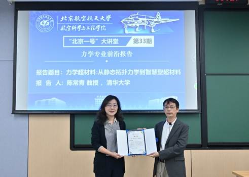 “北京一号”大讲堂第33期在沙河校区SH2-104教室成功举办。清华大学陈常青教授受邀作了题为“力学超材料:从静态拓扑力学到智慧型超材料”的学术报告。陈常青教授目前任清华大学工程力学系主任、钱学森力学班执行首席教授,是国家级高层次人才计划入选者,项目首席科学家。近200名师生齐聚一堂,共享了这场前沿学术的思想盛宴。本次大讲堂由凯发