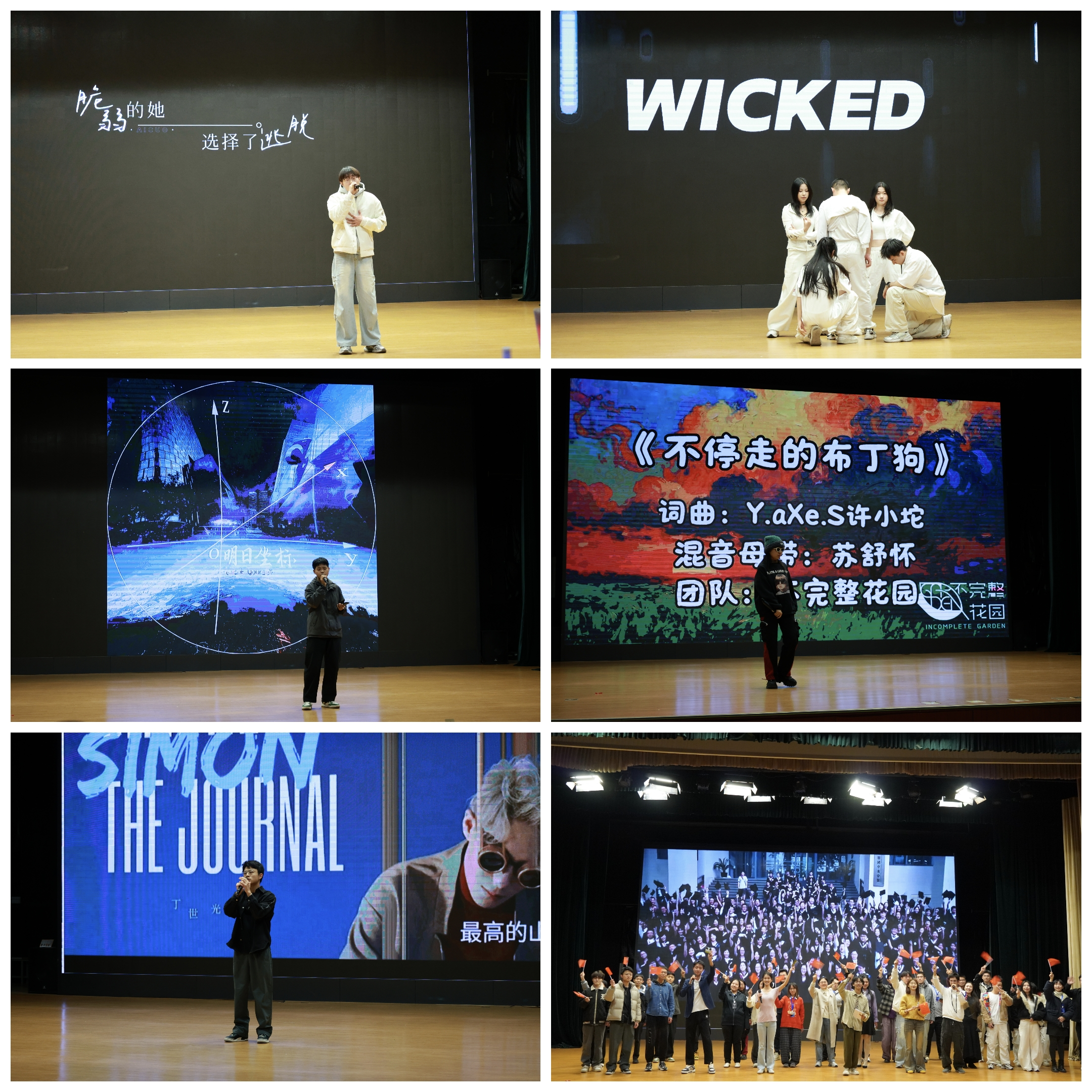 第三幕“着陆·浪漫回响”延续精彩。刘梓宸演唱《爱错》,王小帅带来《明日坐标》,全日制舞团(ADPBH)表演《Wicked》,张一鸣演唱《Simon》,原创作品《不停走的布丁狗》以轻快旋律收尾。随后举行的简短抽奖环节将现场热情再度点燃。最后,全体演职人员与观众合唱《我和我的祖国》,在激昂旋律中为这场音乐盛宴画上圆满句号。