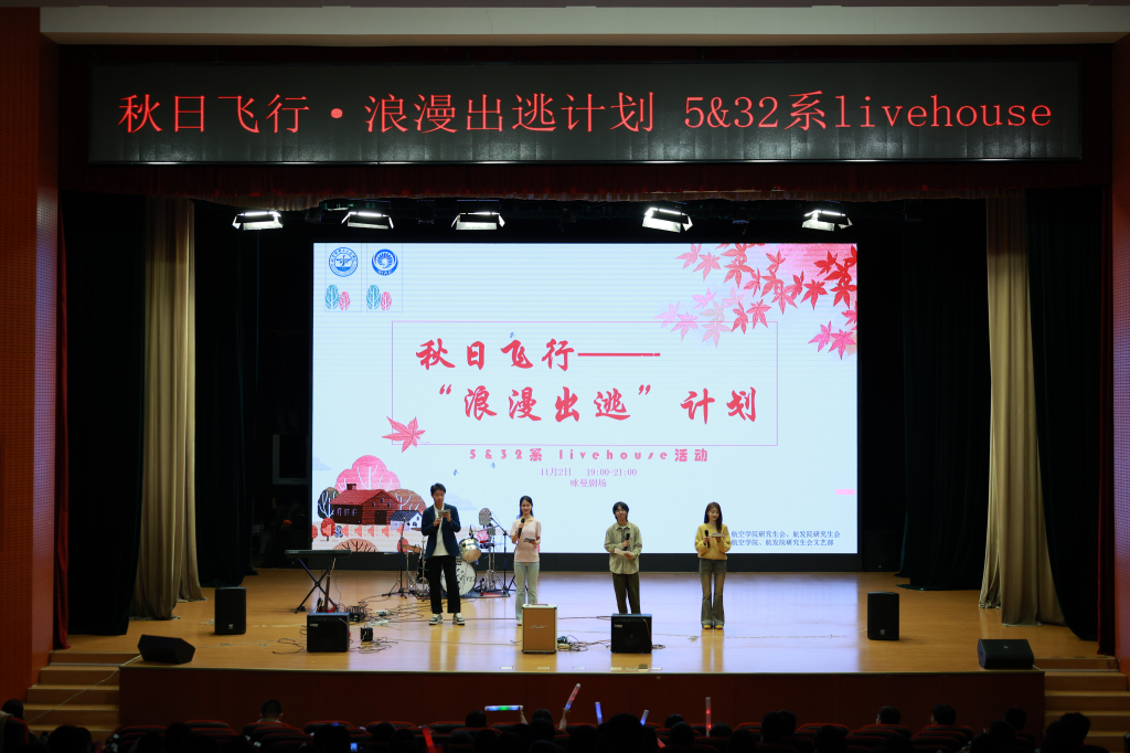 与航空发动机研究院联合主办的“秋日飞行·浪漫出逃计划”Livehouse音乐节在沙河校区咏曼剧场举行。活动由两院研究生会承办,旨在为同学们提供一个放松身心、展示才华的舞台,让青春的旋律与科学的热情同频共振。