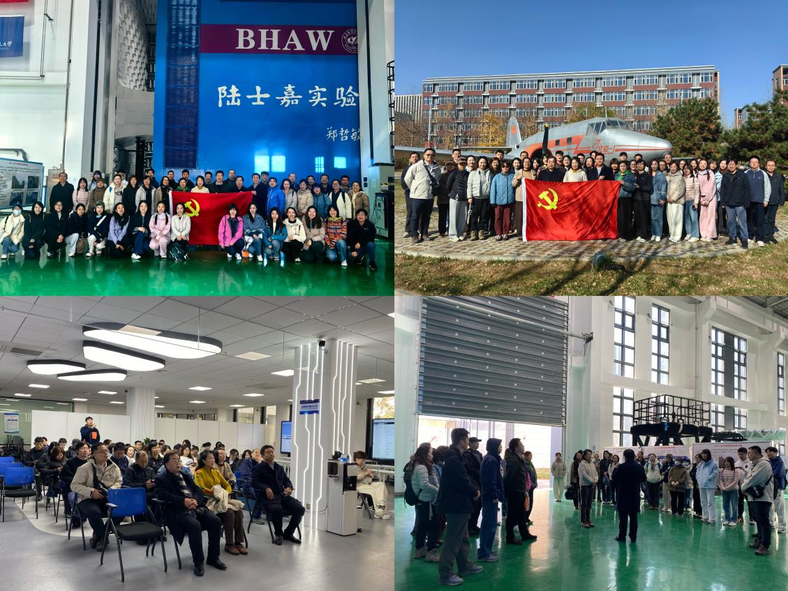 中国科协青少年科技中心党总支一行首先参观了陆士嘉实验室,近距离观察了实验室的精密仪器设备,了解了BHAW风洞的运转方式和工作原理。随后,一行人参观了北航新一代全数字飞行器科教协同中心,了解了北航在未来先进飞行器设计与研究方面开展全数字化能力建设的经验举措。最后,大家一起参观了北京航空航天博物馆沙河馆室外展区,聆听展出飞机的介绍,感受领会北航人空天报国的理想信念和精神品格,并在象征北航精神的“北京一号”前合影留念。