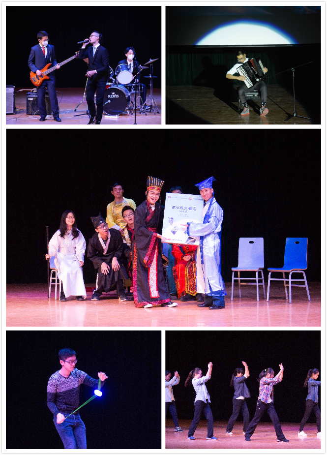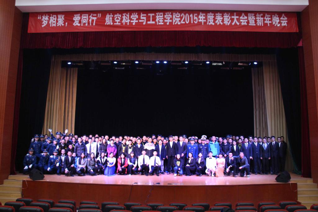在优秀个人和优秀集体表彰的同时,新年晚会各个节目接连上演,赢得观众的阵阵欢呼与掌声:手风琴独奏《弹起我心爱的土琵琶》悠扬婉转;小品剧《新鸿门宴》搞笑逗趣,贴近生活,博得一片掌声;悠悠球表演《Spin Light》技巧性极强,一个个飞舞的弧线酷炫夺目;舞蹈《The Undead Love》在舞动的节奏中挥洒不服输的青春力量;相声《富二代》讽刺社会现状,反映当代青年幽默但不失深度的社会思考;吉他弹唱《贝加尔湖畔》,将观众带回了异国他乡的唯美氛围;扇舞团一曲《咏春》,刚毅与柔美结合,将晚会气氛推向了高潮;2015级双学籍飞行学员带来的合唱《蓝天召唤我》重磅压轴,飞行员的气势磅礴、热血澎湃,怒吼出新时代北航人的担当。