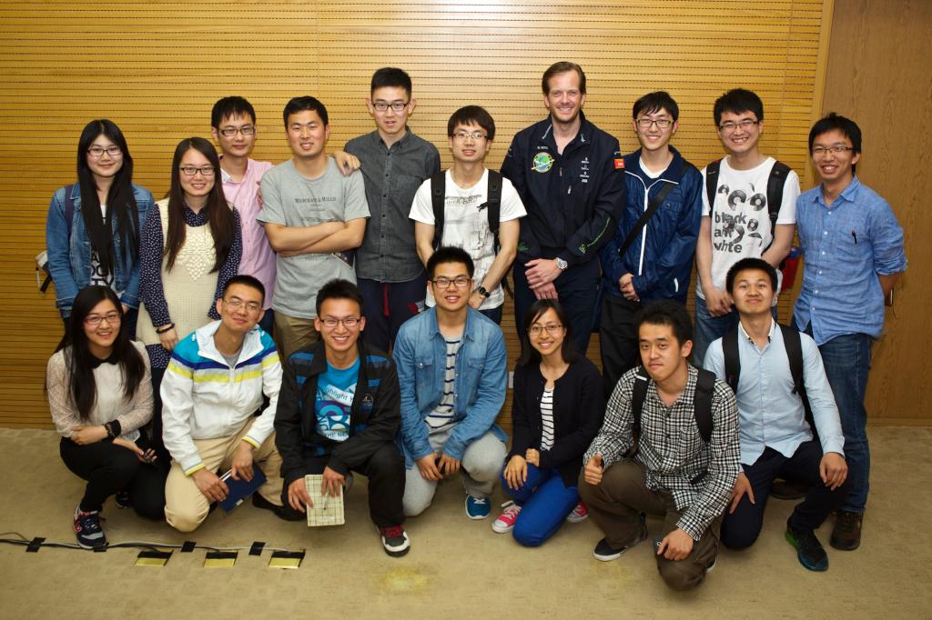 最后,“阳光动力2号”团队成员与我校部分师生亲切合影留念,并表示愿意积极与中国的青年人多多交流,并表示美好的未来需要未来一代的创造,相信北航的师生们能够通过所掌握的科学知识、技能和无限的创造力,让未来更加美好。