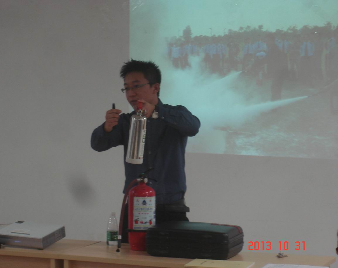 为民安消防教育咨询中心的蔡继源教员以大量详实的资料、视频,生动形象的介绍了目前高校发生火灾的形势、种类、特点,火灾的成因与危害,火灾的预防,初期火灾扑救,火灾报警,火灾逃生技能与自我保护。依法开展消防安全“四个能力”建设,落实单位、个人消防安全责任等。结合石景山某商场大火等,讲解了火灾的种类和起因,并针对不同火情、不同起因向大家讲授了正确防范措施以及公共场所和家庭防火的基本常识,并介绍了在火场中易出现的一些逃生误区以及正确的逃生及自救方法。最后介绍了灭火器的种类和使用方法以及注意事项。