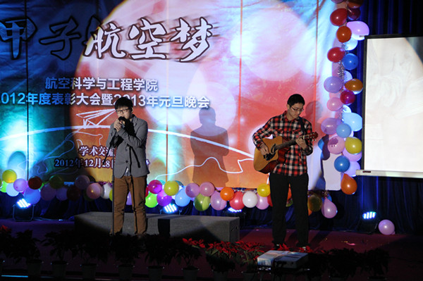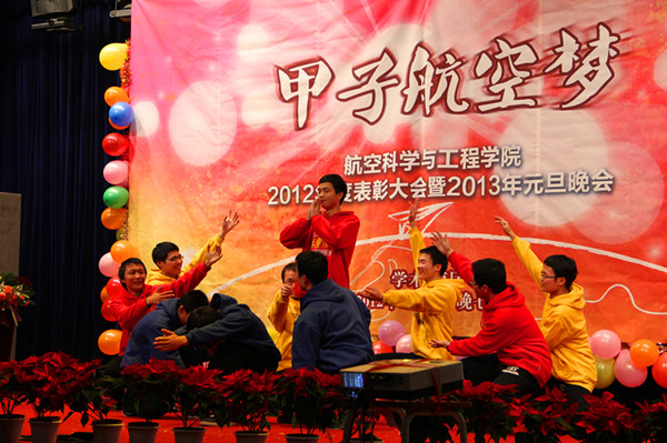 就在现场观众为获奖学生和团体祝贺的热烈掌声中,110516班同学们的一曲合唱《青春北航》为2013年“甲子航空梦”新年晚会拉开了序幕。凯发