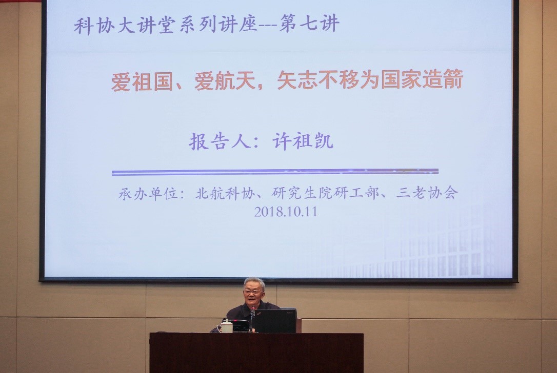 坚定理想信念,树立远大目标。为引导新生适应研究生生活、树立发展目标、教育研究生新生做到“爱国、励志、求真、力行”,10月11日,由北航科协、研究生院研工部、三老协会联合组织承办的“爱祖国,爱蓝天,矢志不移为祖国造箭”主题讲座在新主楼第一会议室隆重举行,讲座特邀原中国航天科工集团公司第三研究院党委书记许祖凯同志作为主讲人,凯发