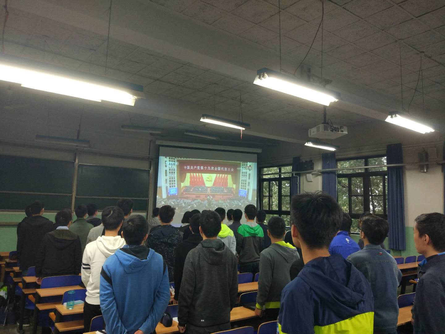 师生党员共同观看党的十九大开幕会直播,学习领会报告精神