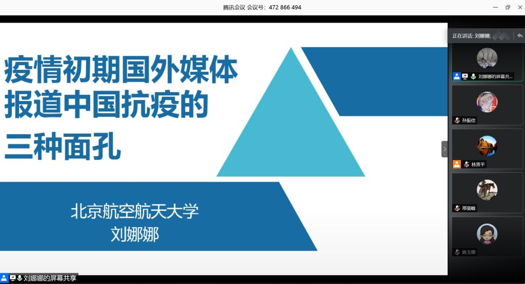 副教授刘娜娜老师讲授“大国战疫”系列专题课《疫情初期国外媒体报道中国抗击疫情的三种面孔》,全院150余名教师参加。