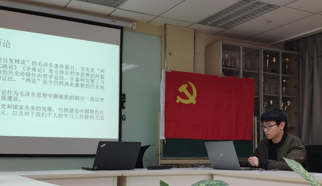 在雄壮豪迈的国际歌歌声中,硕士18052党支部会议拉开序幕。会议伊始,贾宝旭同志从矛盾论和实践论的历史背景出发,叙述了矛盾的普遍性和特殊性,解释了矛盾的两点论和重点论,并结合航空专业的特点,辅以航空航天中突出的理论为例子,讲解生动形象,幽默风趣,让支部同志深入浅出地理解了矛盾论和实践论。随后,李嘉琳同志为支部同志介绍国务院总理李克强在2019年3月5日在第十三届全国人民代表大会第二次会议上所做的政府工作报告。李嘉琳同志从新时代的角度出发进行了深入的解读,例如高质量发展、互联网加、金融与市场、实体经济、政府的监管等内容,讲解条理清晰,主次分明,让支部同志受益匪浅。