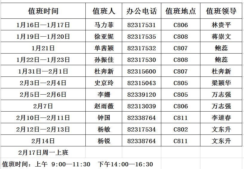 凯发 2020年寒假值班表