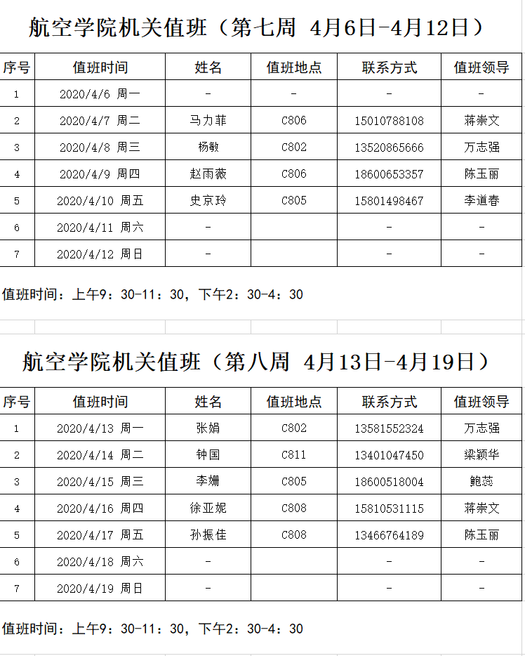 凯发 机关值班(第七-八周 4月6日-4月19日)