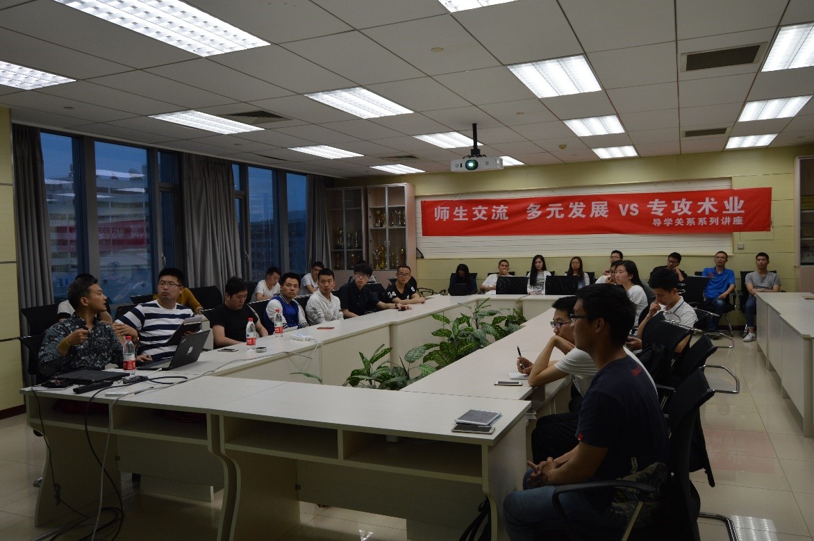 接着是刘哲辅导员的精彩报告。作为辅导员,他的日常工作就是与学生打交道,因此对于导学关系有更加深刻的体会和理解。他着重强调导学关系中的彼此互信四个字,信任是一切关系的基础,这一点毋庸置疑,在导师与学生的关系中,互相信任也是展开研究的重要前提。刘哲辅导员强调与老师之间不能有距离感,不能怕老师,要主动进行交流,这样才可以让老师及时掌握自身的情况,然后定制出适合学生自己的发展规划,这对于我们学生来讲无疑是十分重要的。其次,对于研究生阶段,刘哲辅导员也提出,我们需要保持积极向上的心态,对于任何事情都要斗志满满,充满自信去面对各种挑战。这引起了在座大部分同学的共鸣和思考,刘哲辅导员态度亲切,亦师亦友给大家解决了许多困惑。