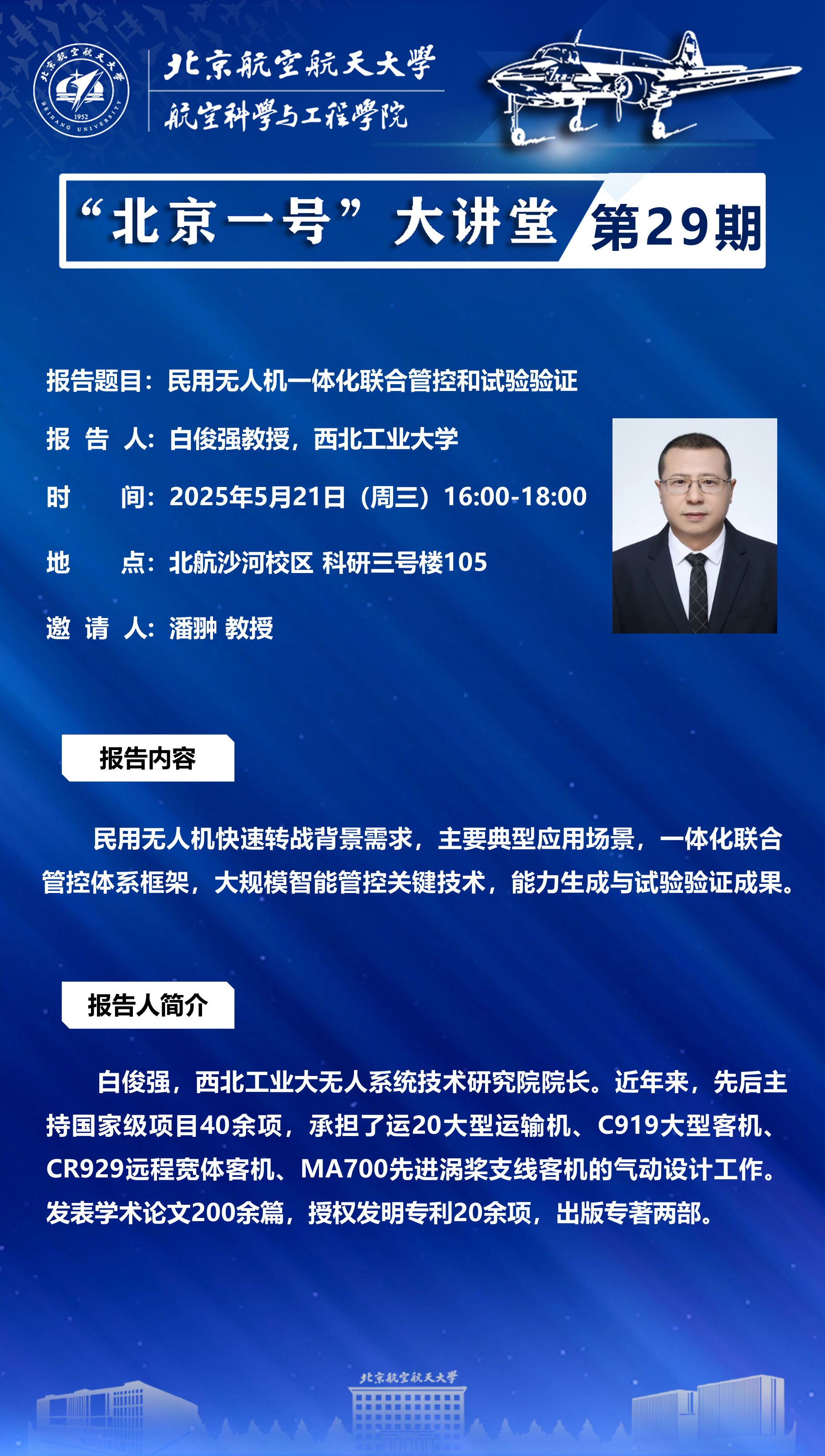 报告地点:北航沙河校区 科研三号楼105教室