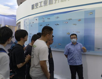 随后,在总装车间,工作人员向同学们介绍了部件铆接、结构组装的工艺和流程,展示了完备的型架设备等硬件设施,科学的管理模式与专业的生产制造水平,虽然时值周末,但大家依然有幸亲眼看到了AC312、AC332、AC352三架机型的导线布置和设备安装的过程,切实的了解了飞机制造中对质量的严格把控,对于直升机的生产流程有了切身体会,对组装的严谨求实印象深刻。