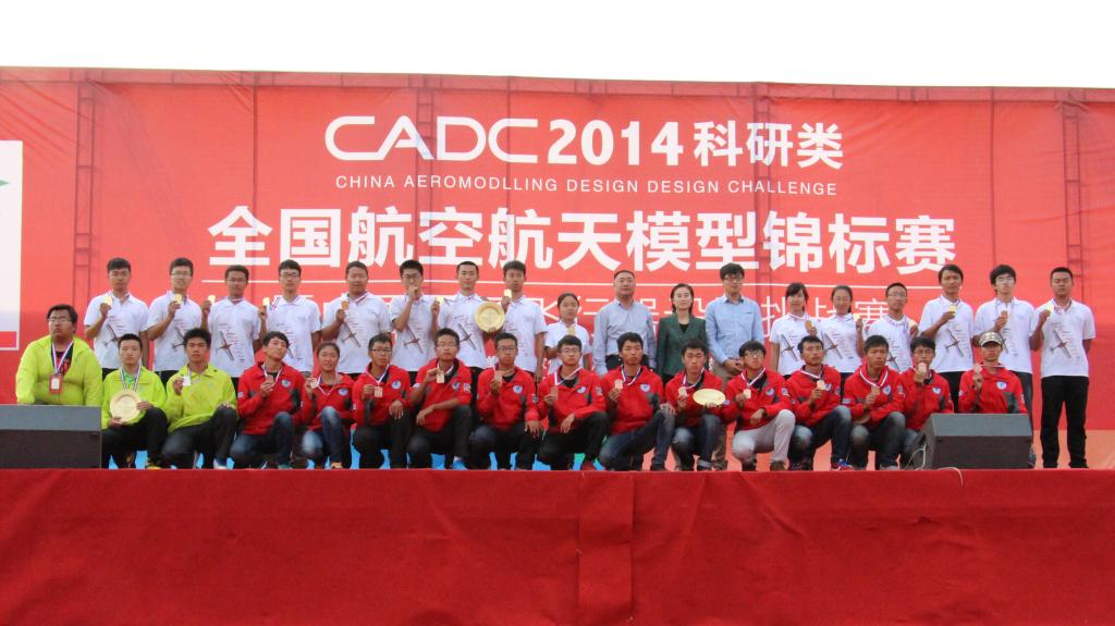2014年10月4日,CADC2014科研类全国航空航天模型锦标赛在山东胶州圆满结束。北航航模队继英国国际飞行器设计大赛夺得油动组冠军后,再创辉煌,满载而归。此次比赛共吸引全国80所高校,1600余名选手参赛。北航航模队在本次比赛中获得科技创新评比竞赛2项一等奖,“垂直起降载运”项目3项一等奖,“模拟搜救”项目2项一等奖,“太阳能飞机”项目1项一等奖,并在最具影响力、竞赛水平最高、竞争最为激烈的“限时载运空投”项目中夺得个人冠、亚军及团体总冠军,“限时载运空投”团队获得了优秀团队奖,张啸迟、章异嬴获得了优秀指导教师称号。