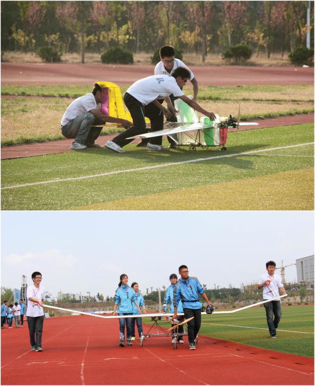 本次大赛共设8个比赛项目,北航航模队共参加其中5个项目的角逐。其中, “限时载运空投”项目是集设计、制作、操控于一身的压轴项目。今年不但有西北工业大学、沈阳航空航天大学这样的老牌劲旅与我们同场竞技,更有5所学校强势加入到冠军的争夺中,其中不乏像河北科技大学这样同在英国国际飞行器设计大赛中拿到冠军的学校。在这样激烈的竞争中,北航航模队的同学们奋力拼搏,不仅获得了团体总冠军,更是包揽了个人冠、亚军。这是北航航模队在此项目上第十次获得团体冠军。同时,在“太阳能飞机”项目中,北航航模队制作的太阳能飞机在每一轮比赛中都依靠优异的飞行性能和出众的操纵技术第一个成功起飞,我们的女总设计师兼操纵手更是得到了领导的肯定与鼓励。另外,在“垂直起降载运”项目上,去年夺得冠军的我们今年依旧强势,凭借出色的设计获得了创新评比一等奖。