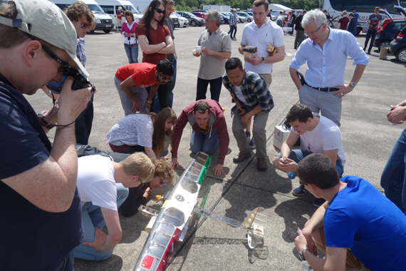 赛后,我校航模队队员与德国队队员进行了技术交流。德国队今年的参赛机在复合材料与结构设计方面取得了重要突破,这些技术对我校参赛队员来说具有重要的借鉴意义,“相互学习才是参加国际性比赛的更重要的目的”,一名队员如是说到。