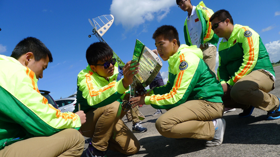 比赛历时两个比赛日。当地时间6月7日上午10点,赛会举行开幕式欢迎各高校参赛团队,随后进入现场答辩阶段,现场六名评委均为飞机设计方面的资深专家。我校航模队派出的三名答辩选手,以流利的英语口语、清晰的逻辑思路以及高超的答辩技巧,得到了现场评委及其他各支参赛队伍的认可,获得了场上最高分。下午1点,飞行比赛开始。受当地阴雨与大风天气影响,不少学校的参赛飞机无法完成赛会规定的“8”字飞行航线。我校参赛飞机以其稳定而优异的飞行性能成功克服了不利天气的影响,乘风破浪,顺利完成空载与2kg载重飞行任务,当天比赛结束后暂列总分第一名。