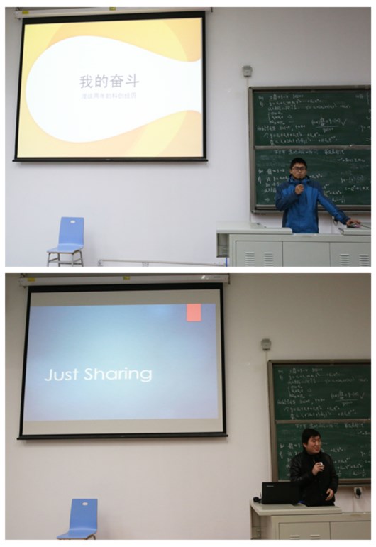最后,由蒋晓航作了关于“Just Sharing”的主题演讲。蒋晓航学长以其朴实的语言伴以坚定的语气为我们解释了一系列有关于创业的问题。在这个急需创新的社会,创业也是一种独特和必不可缺的形式,而蒋晓航学长的讲座恰好能为同学们打开思路,提供了一个更广阔的思维平台让同学们自由地畅想和计划。他也向同学们解释了自信和注重细节在创业中的重要性。