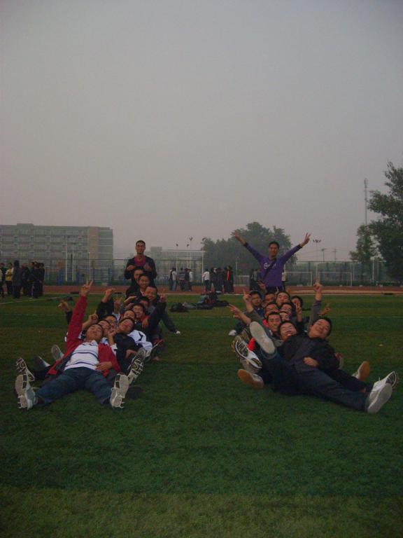 本次活动以小班为单位,由各班班长和发展辅导委员组织,活动内容由班委商议决定。各班本着健康、积极、快乐的原则,举行了各具特色的活动。从足球场一路走来,同学们玩得不亦乐乎。110511班的盲人摸象游戏引起同学们的阵阵笑声,两同学背靠背的坐下与起立游戏培养了搭档间的默契,全班同学围坐一圈的学长游戏更是引人驻足观看。还有的班级与其他班联合举办活动,面庞虽然还有些陌生,但快乐却在传递。