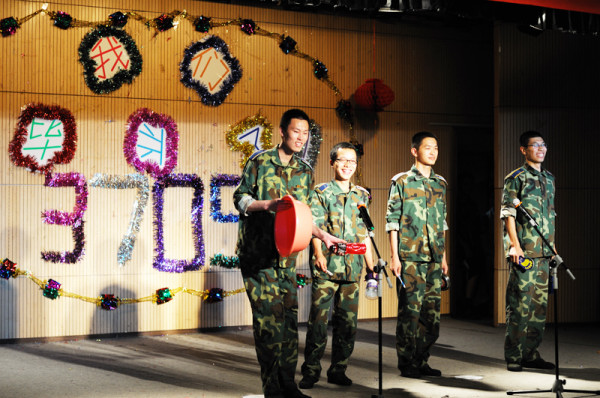 开场合唱《毕业歌》把大家带入了毕业的氛围当中。随后五系同学拿出了精心准备的节目,独唱,说唱,情歌对唱,二胡合奏,钢琴独奏,国防生的三句半,话剧,各种节目依次上演,无不展示了他们多才多艺的一面。其中5位女生火爆的舞蹈《Nobody》更是将全场气氛推向了高潮,掌声欢呼声不断,而火辣热情的肚皮舞也让大家领略了别样的风情。期间,主持人邀请各班班主任颁发了足球赛,篮球赛以及摄影大赛的各个奖项。现场抽奖环节更是再度让全场观众激动不已。辅导员何江也激情洋溢地为大家演唱了《三万英尺》和《天高地厚》,首次展示了其深厚的演唱功底。