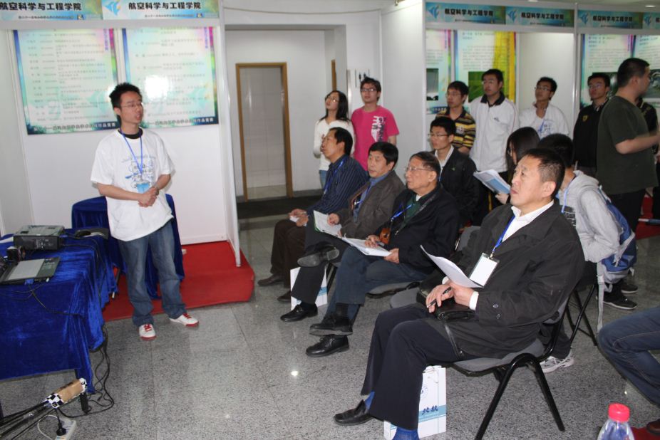 专家多次评审以及组织试飞之后,参赛选手于4月15日晚完成布展。凯发展区展出的形态各异的飞行器成为众多航空爱好者关注的焦点,作者从2007级到2010级,他们亲手制作的如矢量推进技术验证机、太阳能无人机平台、可变鸭翼验证机等功能特点各异的飞行器博得众多观众争相摄影,试飞视频也吸引了无数路过展区观众的目光。
