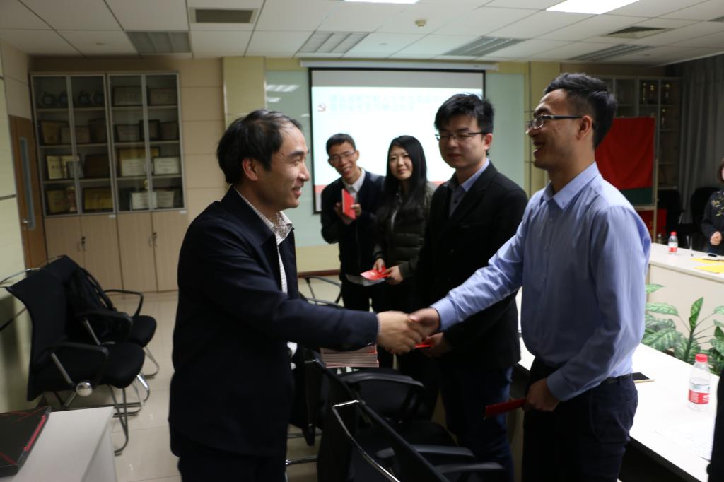 最后,李军锋副书记为支部毕业生党员同志一一赠送了《中国共产党章程》,并亲切勉励支部同志,把个人梦想与国家社会发展相结合,把握机遇,不断前进。专题组织生活会在雄壮的国际歌声中圆满结束。