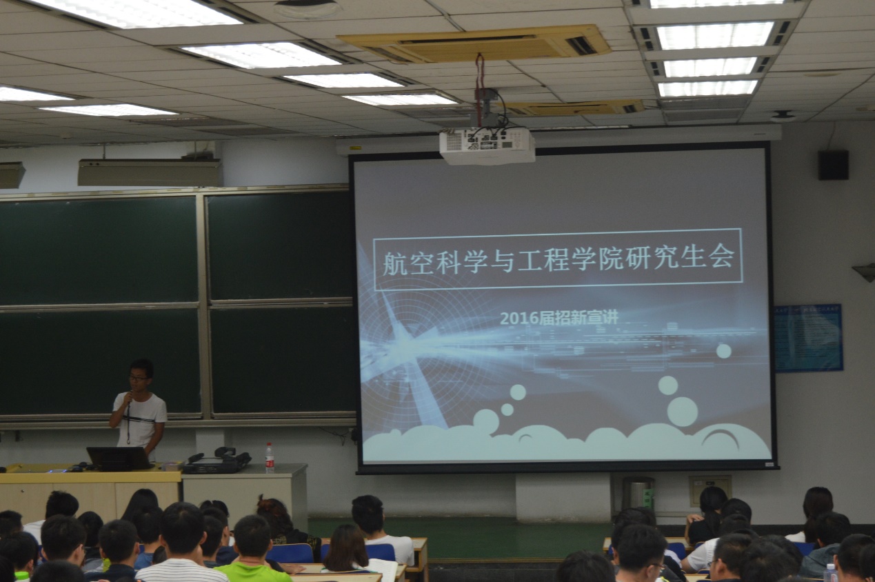 研究生教学秘书史京玲老师,2016级博士辅导员孙巧珍、硕士辅导员刘哲,研究生会主席李小琪,北航AIAA学生分会主席蒲婧,以及2016级全体研究生新生出席了本次大班会。