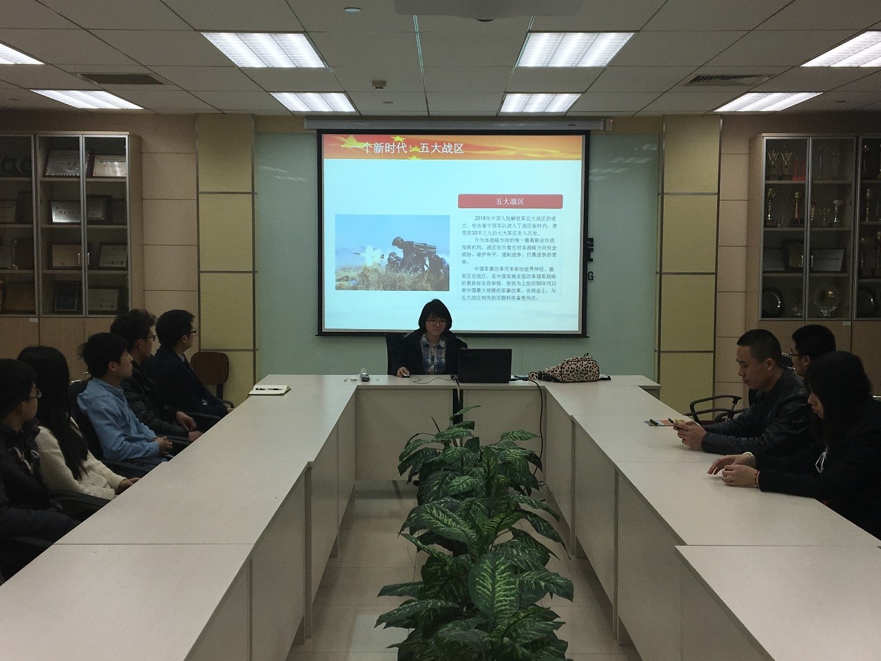 首先,由党支部书记张文英同志进行了关于本次两会将要讨论的热点问题的报告,报告主要内容包括:介绍了“十三五”规划的创新、协调、绿色、开放、共享的发展理念,讲解了以去产能、去库存、去杠杆、降成本、补短板为重点的供给侧结构性改革,讨论了中国制造2025给未来中国经济带来新动能,张文英同志还结合自己家乡陕西分析了脱贫攻坚的重要性,从命运共同体的概念到以“增强政治意识、大局意识、核心意识、看齐意识”为内容的“四个意识”,并结合本次从上世纪50年代以来中国最大规模的军事改革,深度剖析了我国国内外形势特别是当前改革的难题,给我支部党员同志以及积极分子上了充实“有料”的一课。报告也激发了同志们的热烈讨论。