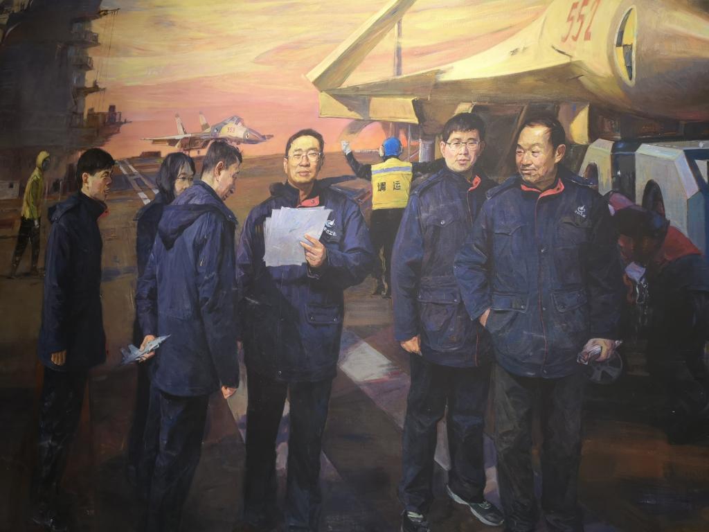 在《历史巨变》展区,一幅油画静静展示在走廊上。油画的内容是杰出校友罗阳指挥协调着舰载机在航母上的试验的画面。今年11月,罗阳学长入选100名改革开放杰出贡献对象,罗阳总指挥带领研发的歼15舰载机成为了我国改革开放40年以来航空工业建设史上浓墨重彩的一笔。站在油画前,SY17053班很多同学纷纷表示受到了罗阳学长事迹的影响,选择来到北航,选择来到凯发