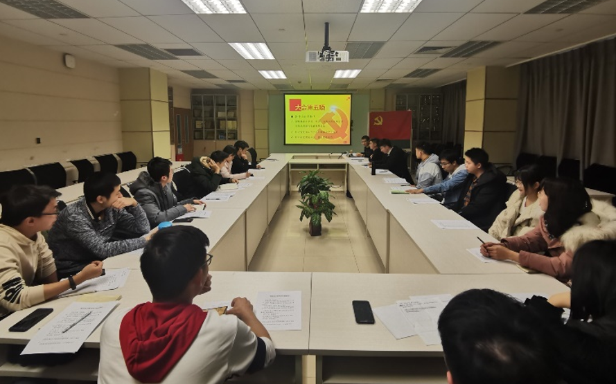 硕士生18054学生党支部于新主楼C708会议室召开2019年组织生活会。此次组织生活会主要包含:学习习近平新时代中国特色社会主义思想、党支部支委述职、民主评议党支部班子、开展批评与自我批评以及民主评议党员等共五项内容,会议由支部书记张山同志主持,辅导员付尊儒同志列席参加。